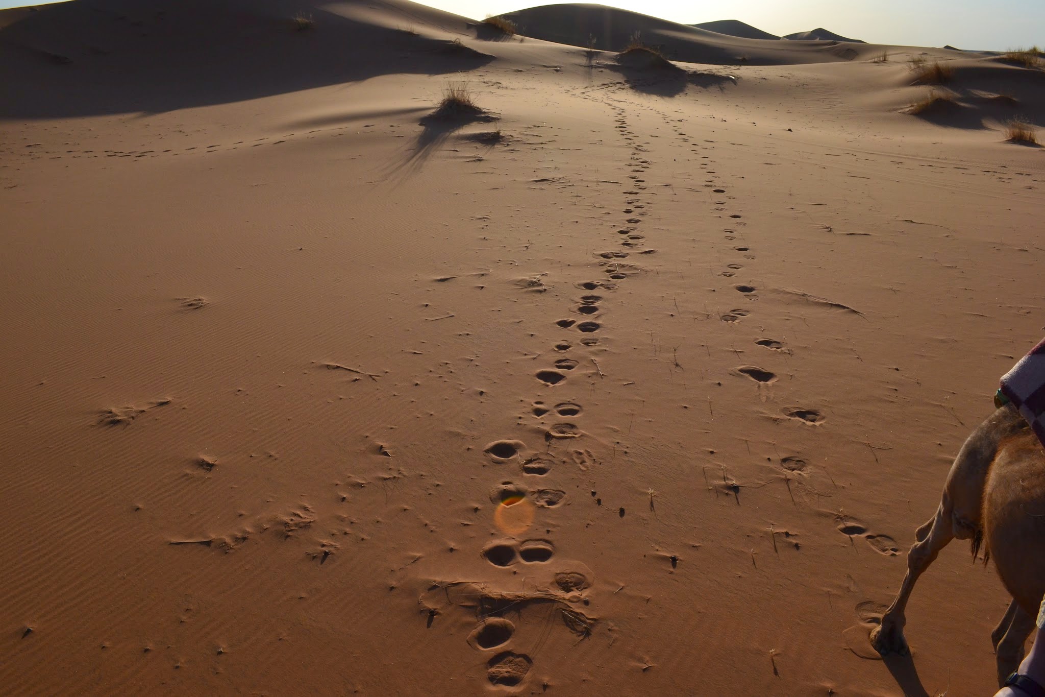 Tak naprawdę większość pustyni w Maroko nie wygląda imponująco, ot – takie klepisko z niskimi krzaczkami. Są jednak diuny, które co roku przyciągają rzesze turystów, jedna z nich to właśnie Erg Chebbi. Ma ok. 50 na 10 km i warto wykupić sobie tam przejażdzkę wielbłądem z nocowaniem w namiocie na pustyni. Wiatr co prawda w nocy wiewa piasek do oczu, po namiocie biegają podejrzane żuczki, ale wszelkie niewygody rekompensuje zachód i wschód słońca.