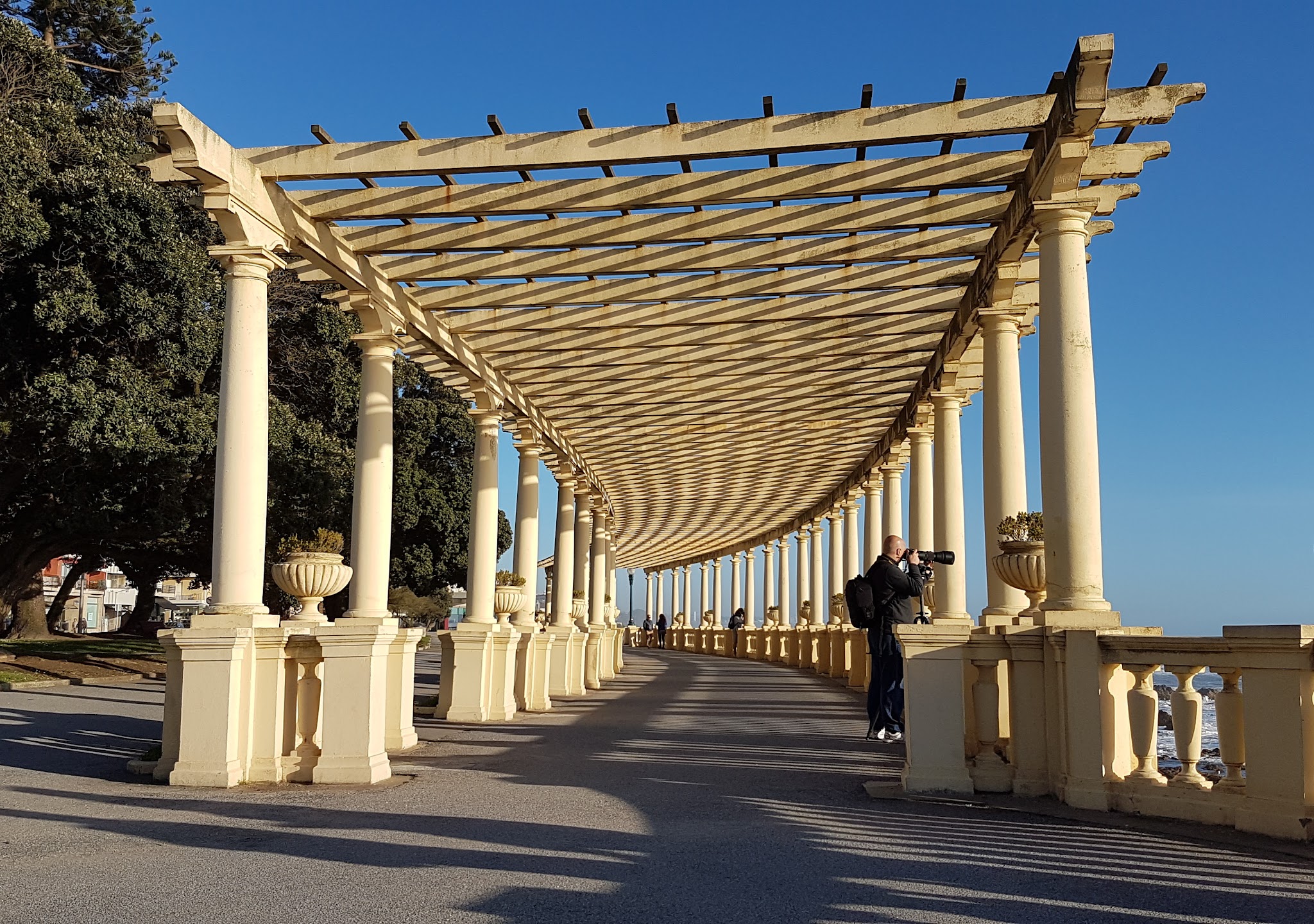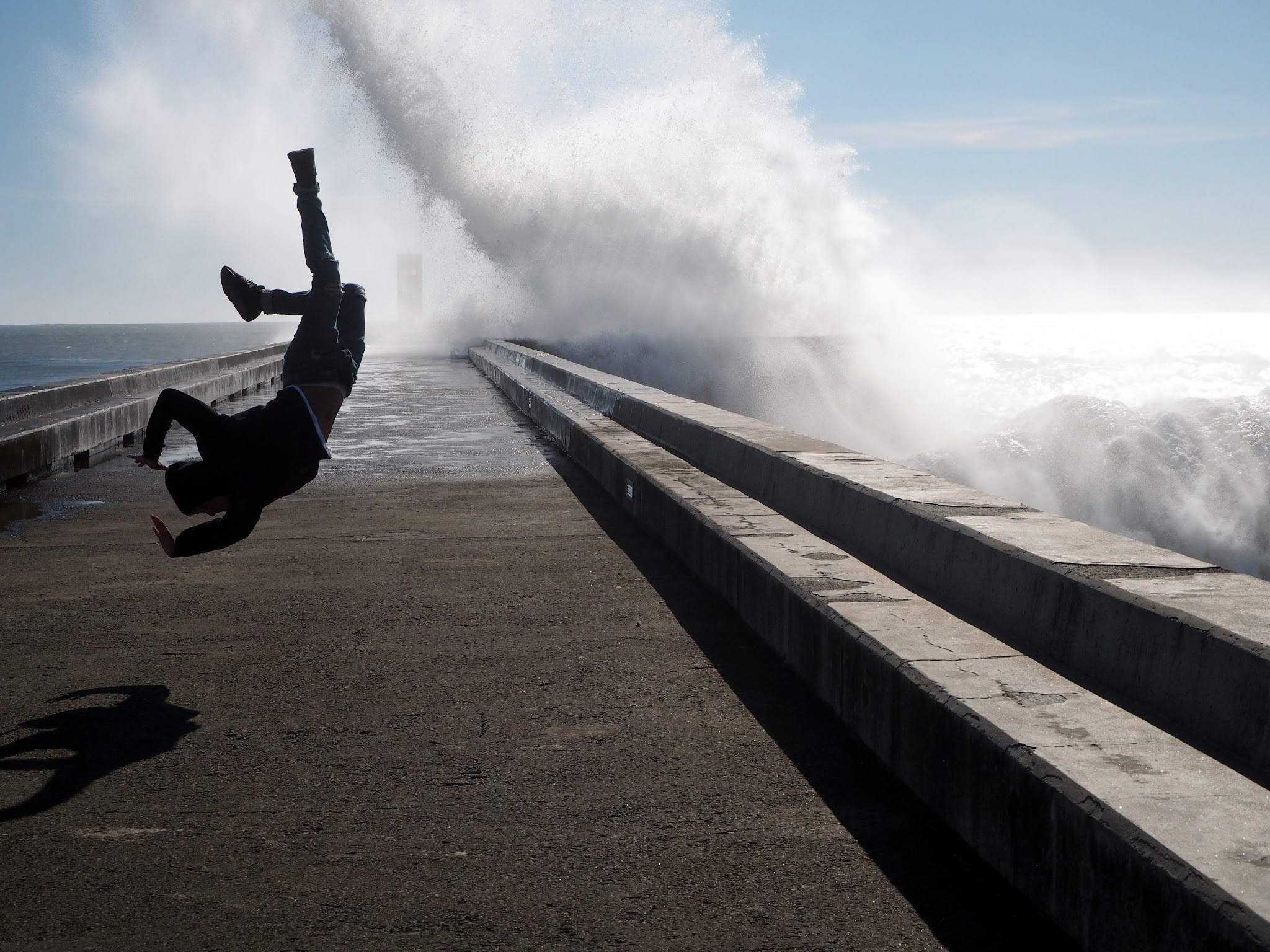 Ale, ale – mieliśmy przecież jechać na ocean! Wracamy więc do zabytkowego tramwaju, który wiezie nas w stronę wielkiej wody. Mamy szczęście, na niebie nie ma ani jednej chmurki, korzystamy więc z ładnej pogody i wybieramy się na spacer wzdłuż wybrzeża. Zaczynamy od latarni morskiej, przy której rozbijają się wielkie fale, wysyłając w górę słupy morskiej wody, niesionej wiatrem na nasze włosy i okulary. Jest tu trochę spacerowiczów i młodych par. Jedna z nich przez dobre 20 min próbuje zrobić idealne zdjęcie, w sensie dziewczyna próbuje, a chłopak wyczynia ewolucje. Strzeliłam oczywiście fotkę 🙂