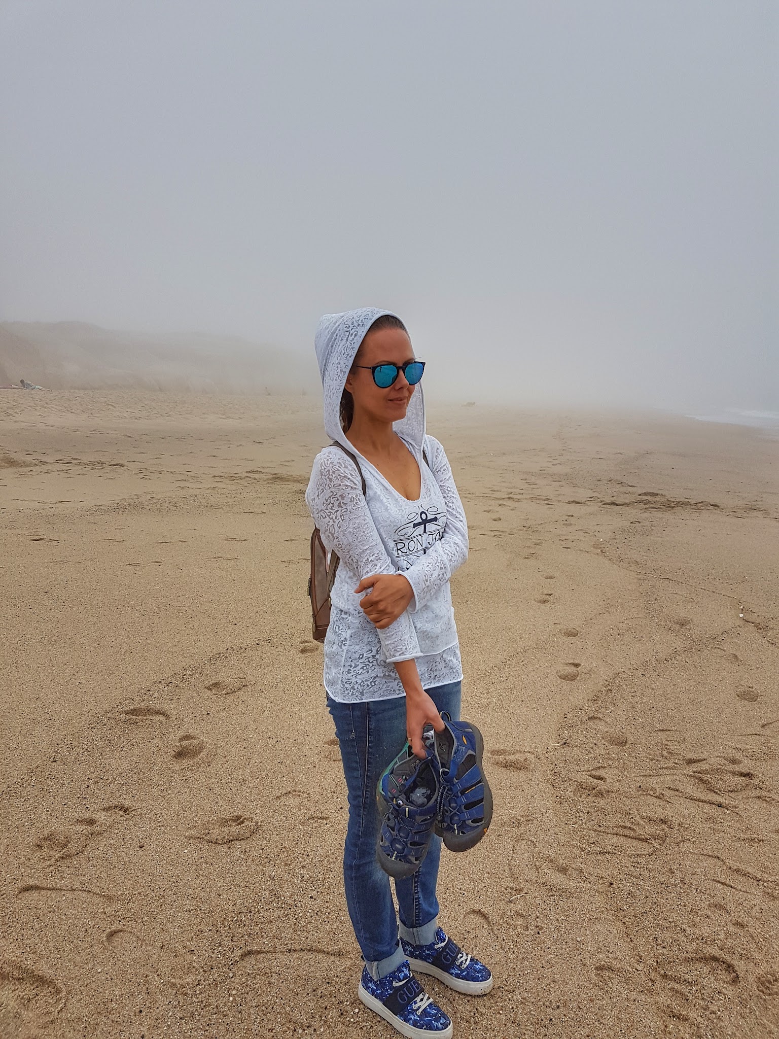 Jeszcze słów kilka o klimacie. Jeśli spodziewacie się 30 stopniowych wakacyjnych upałów i słońca bez końca, to wybierzcie raczej wybrzeże Algarve. Costa de Prata ma latem średnią 21 st C i zwykle do południa całe wybrzeże otulone jest gęstą mgłą. Im cieplej w środku lądu, tym większa różnica z wilgotnym i chłodnym powietrzem znad oceanu i tym większa szansa na mglisty poranek. A że klimat oceaniczny jest nieprzewidywalny, to i kilka dni deszczowych też się może trafić, nawet w zupełnie pewnym (wszędzie indziej) sierpniu. Nie zmienia to faktu, że jak już wyjdzie słońce, to wydaje się, że jest dużo więcej niż 21 stopni, także do zwiedzania jest to bardzo komfortowe. Piszę o klimacie tylko dlatego, żebyście nie zapomnieli skarpetek ani bluzy 🙂 Sprawdzone!