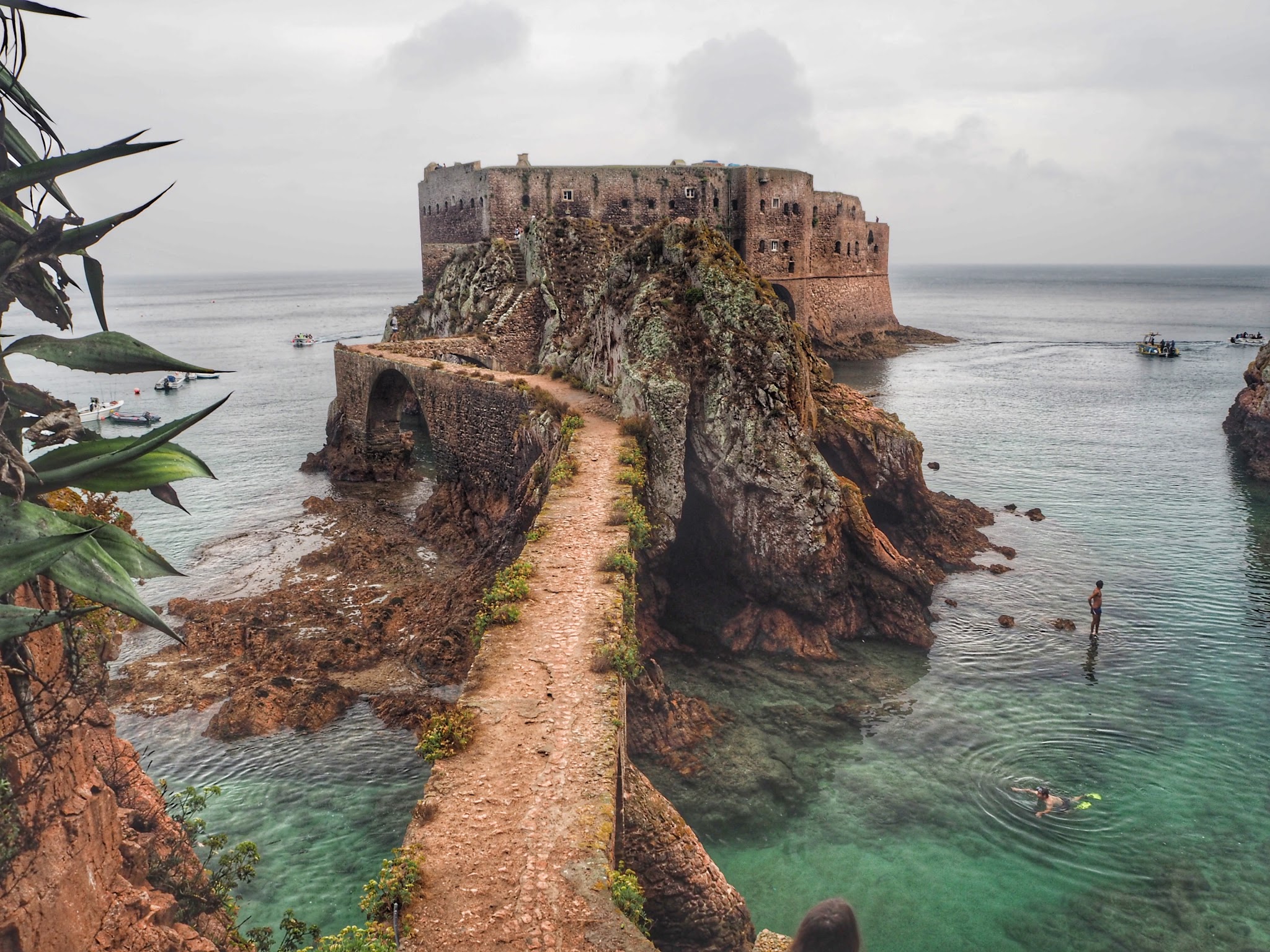 Zwlekaliśmy z jej odwiedzeniem, zwlekaliśmy (bo przecież jest tak blisko!), aż w końcu przyszło nam tam płynąć w deszczowy dzień. Minusem było to, że nie do końca widać było efekty świetlne w jaskiniach (w sensie nie było ich widać w ogóle), ale za to było bardzo mało ludzi, a dramatyczne niebo świetnie wyszło na zdjęciach. Łódkę w sezonie warto zarezerwować 2-3 dni wcześniej, my korzystaliśmy z Feeling Berlenga, ale można się tam też dostać zwykłym promem. Polecam połączenie szybką łodzią, bo im mniej bujania na falach, tym lepiej – wierzcie mi…