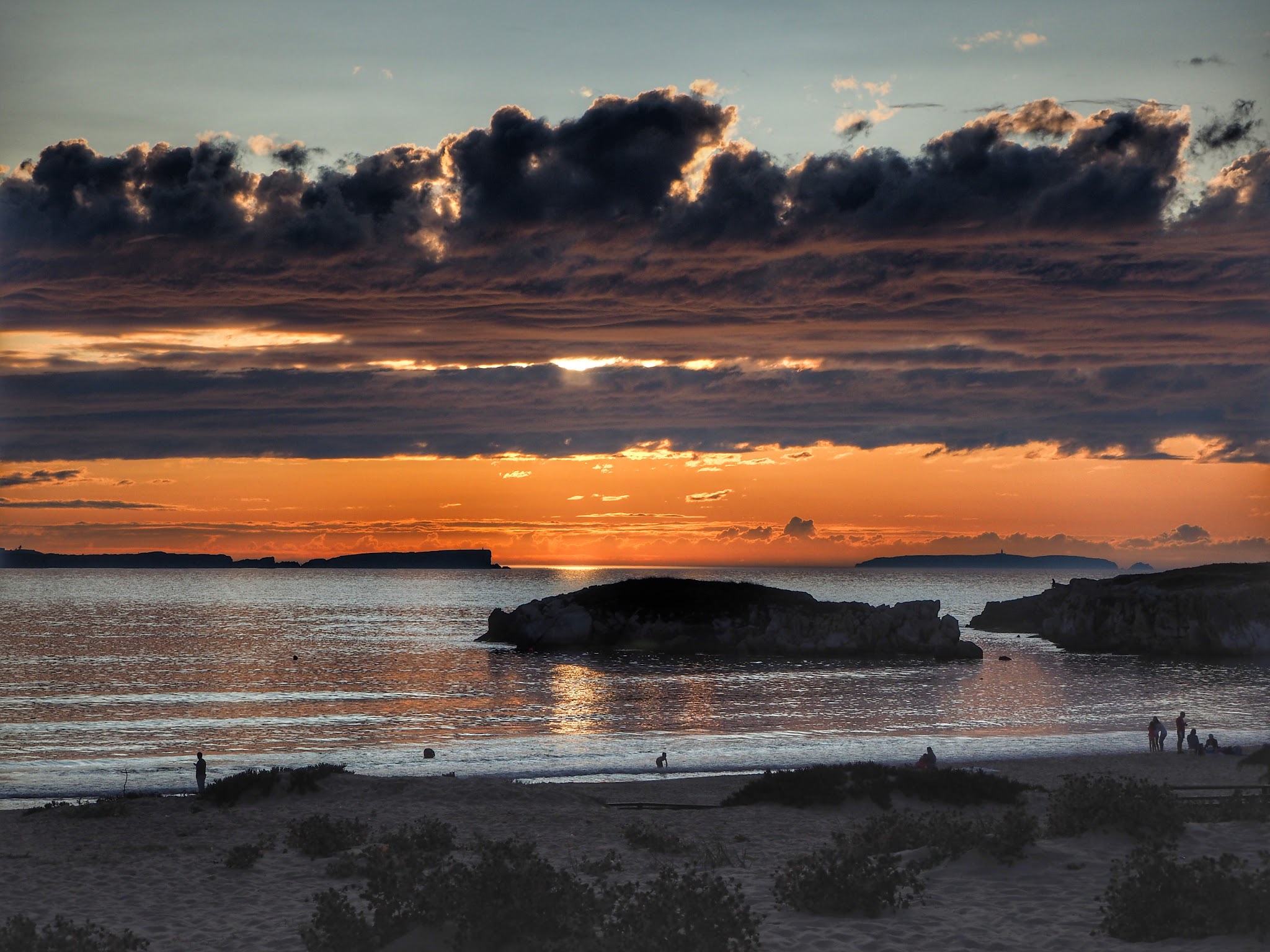 Co tu dużo mówić, fajny klimat ma ta plaża, a jakie zachody słońca 🙂 Ludzi bardzo dużo, parawanów też, ale fale są idealne – dla dzieci wystarczające, żeby pobawić się bodyboardem, a dla dorosłych na tyle małe, żeby nie osiwieli pilnując swoich pociech. Baaardzo polecamy malutką knajpkę na półwyspie, jedliśmy tam najpyszniejszy stek z tuńczyka i grillowaną ośmiornicę w naprawdę niskich cenach: Taberna do Ganhao. Ten adres warto zapisać!