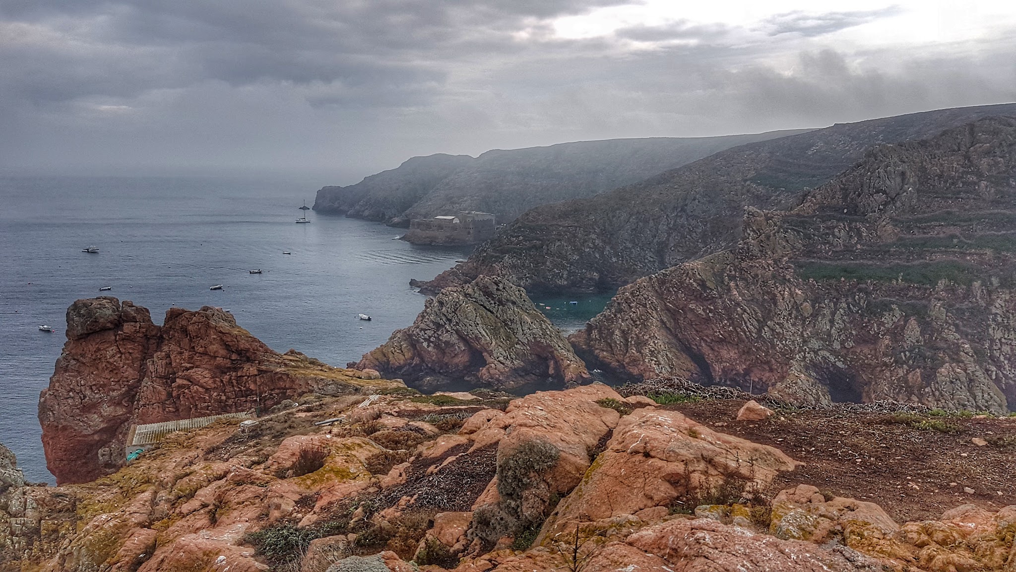 Zwlekaliśmy z jej odwiedzeniem, zwlekaliśmy (bo przecież jest tak blisko!), aż w końcu przyszło nam tam płynąć w deszczowy dzień. Minusem było to, że nie do końca widać było efekty świetlne w jaskiniach (w sensie nie było ich widać w ogóle), ale za to było bardzo mało ludzi, a dramatyczne niebo świetnie wyszło na zdjęciach. Łódkę w sezonie warto zarezerwować 2-3 dni wcześniej, my korzystaliśmy z Feeling Berlenga, ale można się tam też dostać zwykłym promem. Polecam połączenie szybką łodzią, bo im mniej bujania na falach, tym lepiej – wierzcie mi…