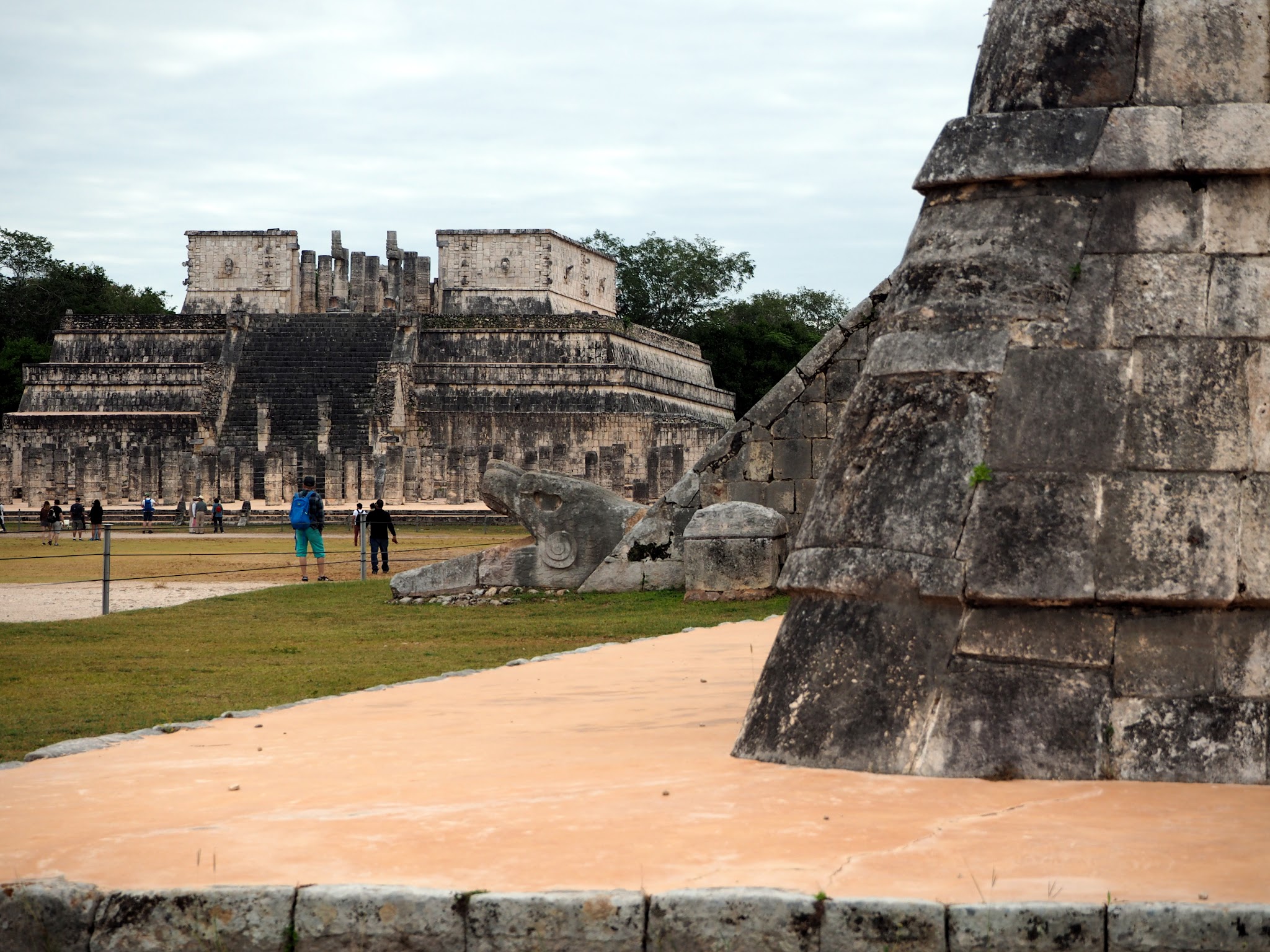 Pieszczotliwie nazywana przez tubylców „chicken pizza”, jest wymieniana zawsze na 1 miejscu atrakcji turystycznych Meksyku. Specjalnie nocowaliśmy jakieś 5 min. od tych ruin, żeby być tam zaraz po otwarciu. Zdecydowaliśmy się też na przewodnika, żeby ktoś profesjonalnie przybliżył nam historię i symbolikę kultury Majów i Tolteków. Była to dobra decyzja, nie wiedzieliśmy np. że pod widoczną piramidą kryje się druga mniejsza, że w trakcie równonocy wiosennej i jesiennej, złudzenie optyczne sprawia, że widzimy pełzającego po zboczu budowli węża, czczone przez Majów bóstwo Kukulkan i wiele innych ciekawostek. Pokazał nam też „śmiech Kukulkana„, czyli efekt dźwiękowy, który pojawia się podczas bicia brawo przed piramidami. Akustyka tych budowli to w ogóle bardzo ciekawy temat: nasze testy dowiodły, że normalna rozmowa z samego dołu piramidy na górę w zasadzie nie wymaga podnoszenia głosu…