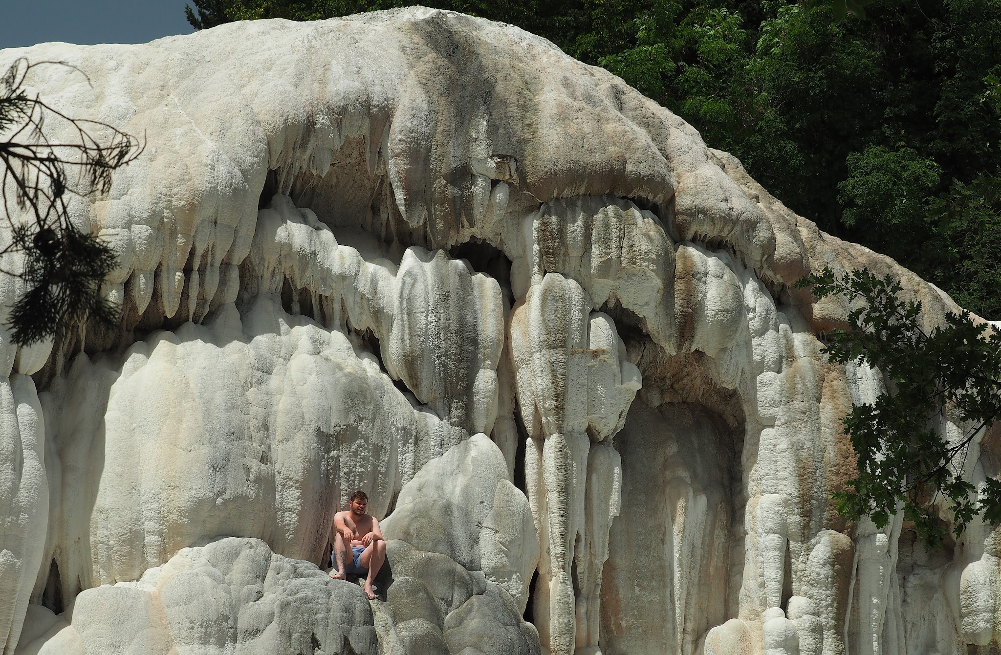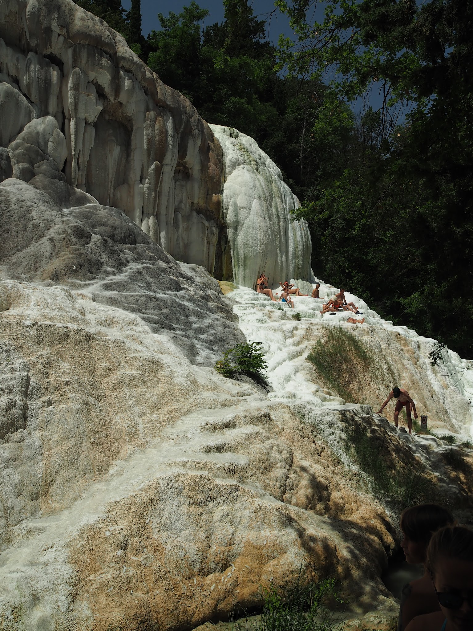 Im niżej, tym chłodniej i ludzi przybywa, aby osiągnąć kulminację tuż przy wielkim białym tworze skalnym, który nadał nazwę temu niezwykłemu miejscu. Bo skale nie można chodzić, chociaż ludzie na zakaz raczej nie zwracają uwagi  i nie udało mi się zrobić zdjęcia bez przypadkowych roznegliżowanych spacerowiczów. Jak jesteście niedaleko, na pewno warto tam podjechać, obłożyć się podobno cuda działającym błotkiem, spłukać w gorącym lub chłodnym źródle, ale więcej niż 2 godziny raczej bym na waszym miejscu na Fossa Bianca nie rezerwowała 🙂
