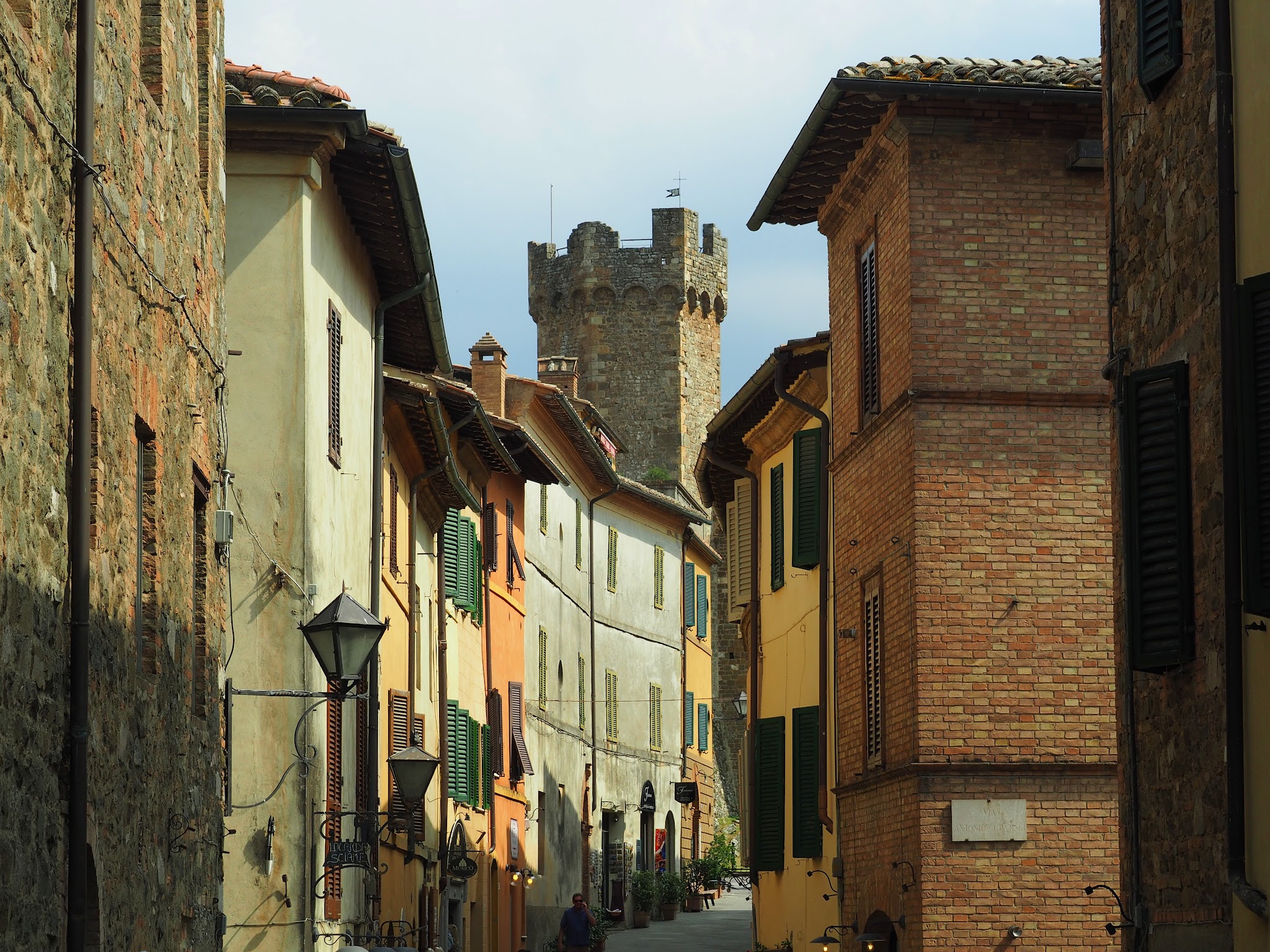 Droga dojazdowa do zamku, biegnąca przez wąskie stare uliczki, była już atrakcją samą w sobie. Sam zamek jest bardzo kompaktowy, ale ciekawy. Na zewnątrz sprawia wrażenie bardzo starego, wrażenie potęguje też stara studnia na dziedzińcu przed wejściem, a środku natomiast jest odnowiony i jasny. W salach muzealnych jest troszkę ciekawych eksponatów dla dzieci, które można pomocą i wypróbować, przekonując się np. jak działa oddziaływanie elektrostatyczne, można też wspiąć się na dzwonnicę (byle nie o pełnej godzinie 🙂 ) i wyjrzeć na okolicę. To właśnie sprzed zamku w Poppi udało nam się sfotografować piękne ujęcie krętej alei cyprysowej, tak charakterystycznego elementu wielu toskańskich pocztówek. Tuż obok zamku jest bardzo polecana restauracja Casentino, niestety akurat w środę była zamknięta i nie mogliśmy wypróbować jej specjałów.