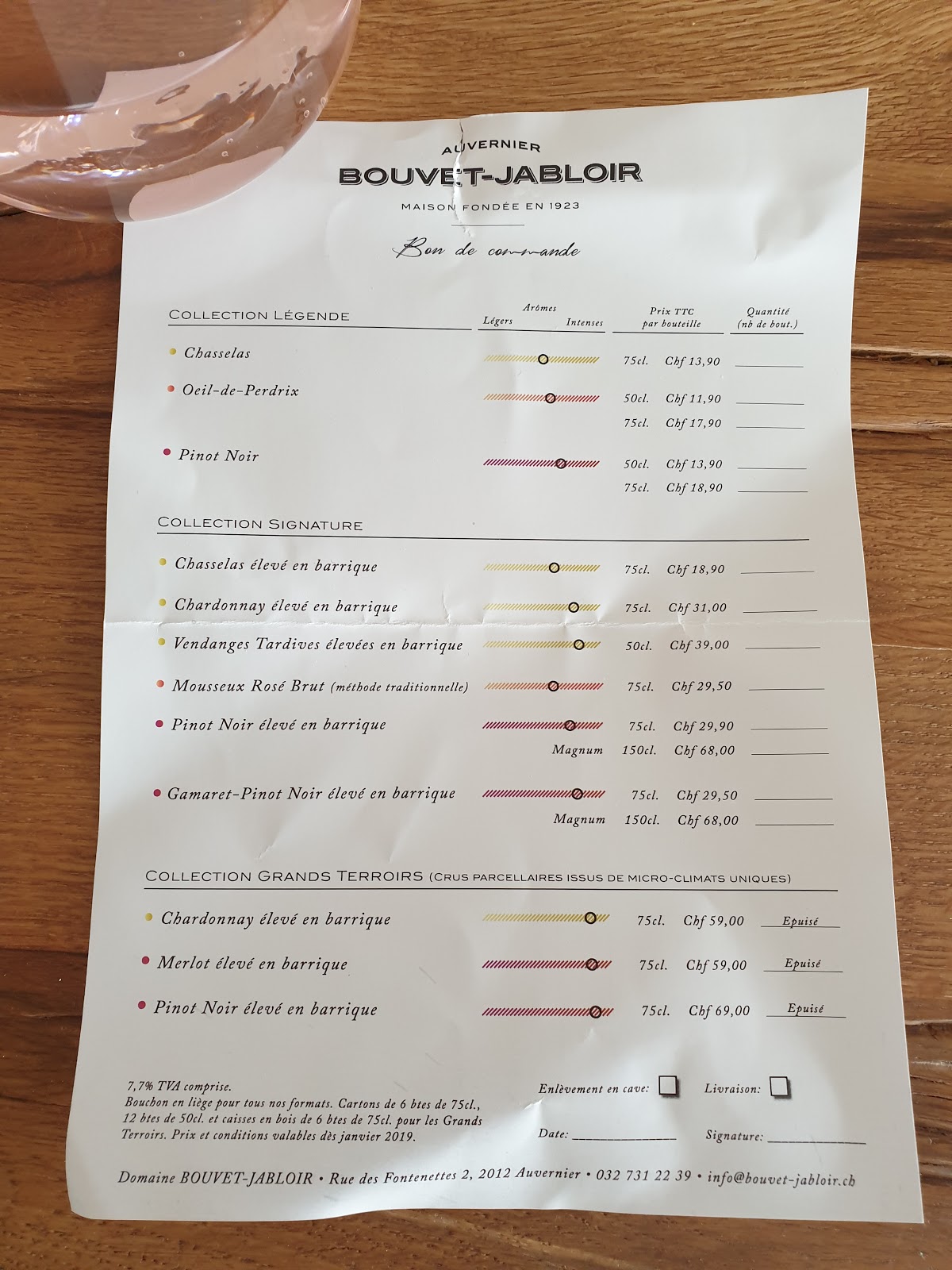 Mając naszą nieocenioną informatorkę na miejscu, wiedzieliśmy, gdzie się udać! Do Auvernier, gdzie zaznajomiona winnica akurat przeprowadzała swoją comiesięczną degustację połączoną z mini poczęstunkiem 🙂 Założona w 1923 roku, prowadzona przez dwóch braci, winnica Bouvet-Jabloir może poszczycić się naprawdę doskonałymi winami, szczególnie Chardonnay i Pinot Noir. Powiem szczerze, że ich Gamaret-Pinot Noir Signature było jednym z najlepszych czerwonych win, jakie piłam w życiu (jakbyście tam zawitali, to ta butelka z fioletową etykietą)!