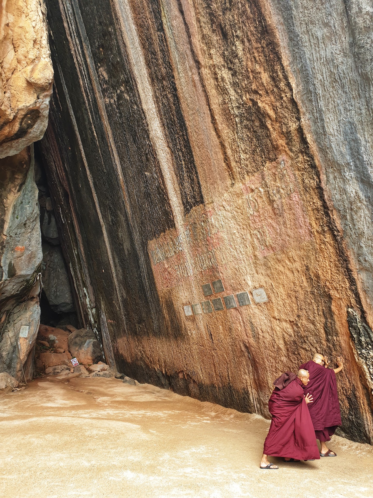 Warto tu wynająć przewodnika, gdyż w zasadzie to cały kompleks świątyń, z których najbardziej znana mieści w sobie ogromny, 46-metrowy posąg złotego odpoczywającego Buddy. Dzięki przewodnikowi dowiedziałam się na przykład, że moja miłość do niebieskiego jest ściśle związana z dniem tygodnia, w którym przyszłam na świat! I już wszystko jasne 🙂 Oprócz słynnej świątyni z leżącym bóstwem, ciekawa była dla nas też mniejsza świątynia z Buddą oplecionym wężowym splotem gada o 7 głowach. To właśnie tam pary, które z utęsknieniem czekają na potomstwo, mogą składać ofiary z owoców i kwiatów, modląc się o rychłe powiększenie rodziny. Oczywiście można się też modlić o nie powiększanie, jeśli już jesteśmy usatysfakcjonowani na przykład dwójką 🙂