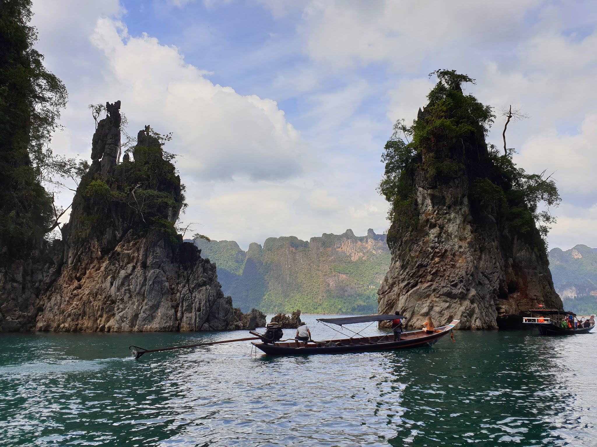Niewątpliwie jedną z naszych najfajniejszych atrakcji była dwudniową wycieczka nad jezioro Cheow Lan z noclegiem w pływających domkach. Choć czystość i stan tych domków pozostawiała bardzo wiele do życzenia, widoki wynagradzały nam wszelkie niedogodności 🙂 Jezioro powstało w 1987 roku, w wyniku wybudowania tamy i zalania powierzchni 185 kilometrów kwadratowych, a powstały tam park narodowy, w którym żyją tygrysy, tapiry, różne gatunki ptaków i małp przyciąga dziś rzesze turystów.