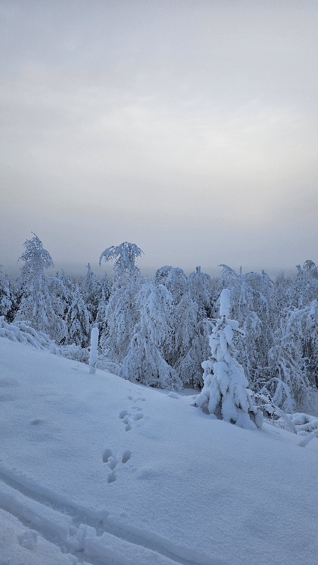My wybraliśmy się na szlak Ounasvaara, łatwą spacerową trasę z widokiem na miasto z góry. Nie zmierzyliśmy się z bardziej wymagającymi wędrówkami z dwóch powodów. Po pierwsze nasz dzień był bardzo krótki, a ryzyko, że noc zastanie nas na nieznanym szlaku przy -15 stopniach, zbyt duże. Po drugie okazało się, że nasze warstwy narciarskie jednak nie dały rady wilgoci i niskim temperaturom za kołem polarnym i większość czasu było nam po prostu zimno…