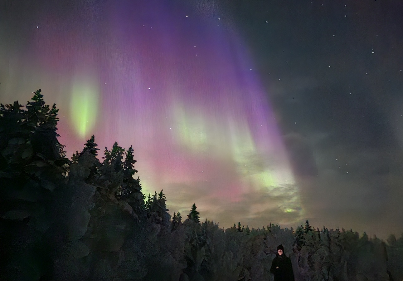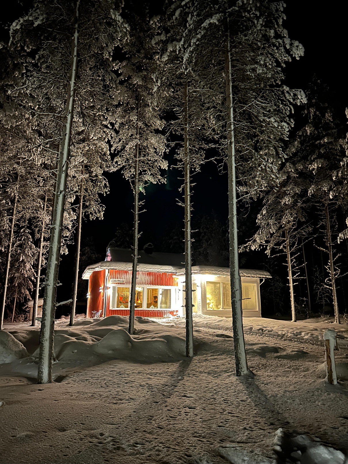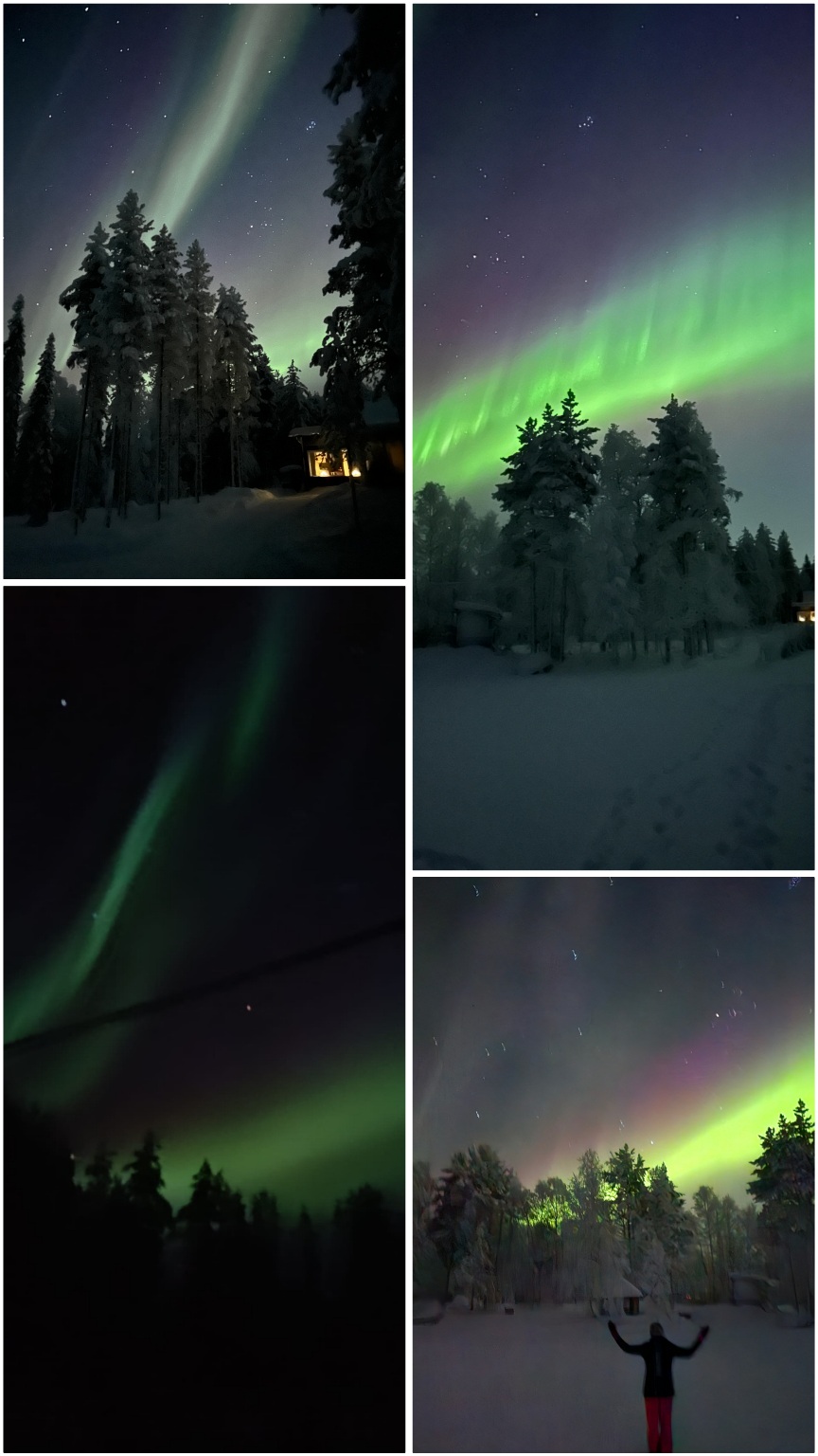 Prognozy pogody przed wyjazdem, a nawet w jego trakcie nie wskazywały, że spełnimy nasze marzenie. I nawet nie chodzi o wskaźnik aktywności słonecznej (KP index), tylko o 100% pokrywę chmur nad większością Finlandii. Trudno, myśleliśmy, że po prostu będziemy musieli spróbować kiedy indziej… I to był kolejny przykład, że nie ma co ufać do końca prognozom, bo w dniu kiedy indeks przekroczył 7 (na 10), niebo nad nami się przejaśniło i bez dalekich wypraw, zorganizowanych wycieczek za 150EUR od osoby, bez tłumów dookoła, udało nam się podziwiać ten niezwykły wymarzony spektakl tuż obok naszej chaty.