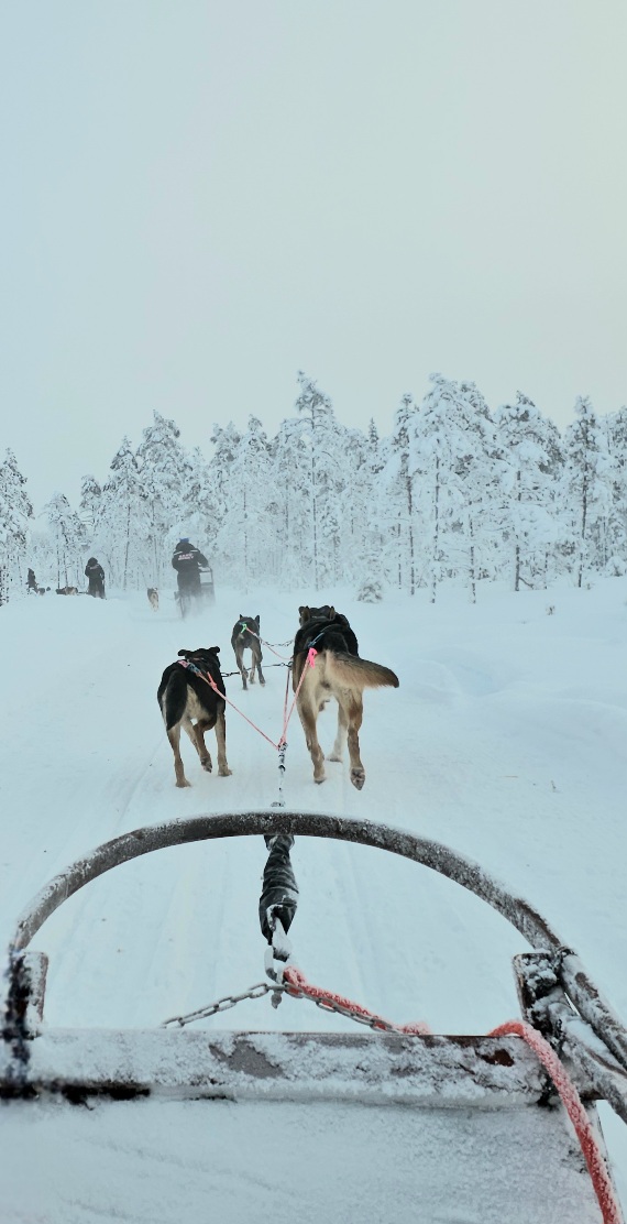 Warto jest wybrać mniejszą firmę, która dba o swoich puchatych podopiecznych, tak jak Baba Husky, założona przez dwoje naszych rodaków, Paulinę i Marcina. Jeśli Wasze plany na to pozwolą, wybierzcie jazdę o 10 rano, pamiętajcie, że słońce zachodzi tam w styczniu przed 15.00 🙂 5 km przejażdżka z uwielbiającymi ruch husky, możliwość „kierowania” psim zaprzęgiem i podziwianie zmrożonego krajobrazu w różowawej poświacie wiszącego nisko nad horyzontem zimowego słońca, to była zdecydowanie nasza najfajniejsza lapońska przygoda!